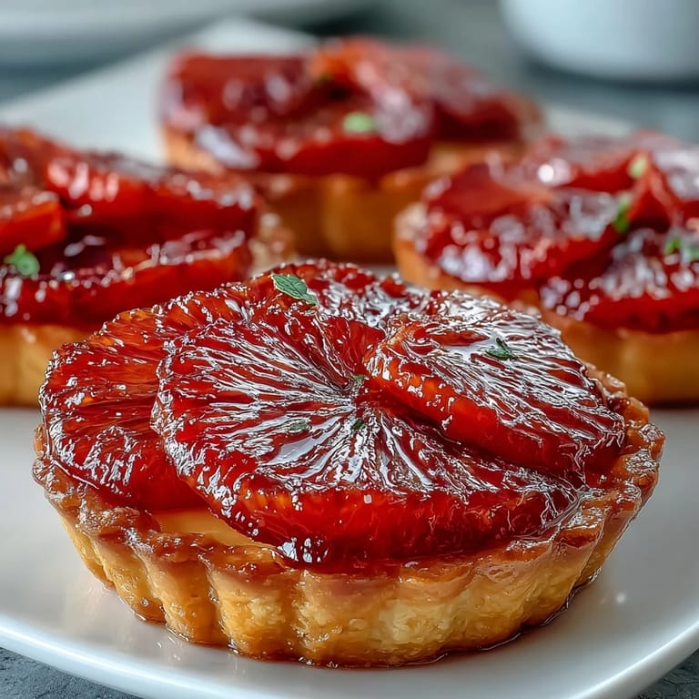 Save The morning light hit the blood oranges on my counter and I knew I had to do something special with them. Their deep magenta flesh was too beautiful to just squeeze into juice. I'd been wanting to try individual tarts for weeks, something elegant but not fussy, and suddenly the whole dessert came together in my mind. Within an hour, I had dough chilling and was already planning who I'd invite over to help me eat six of these.