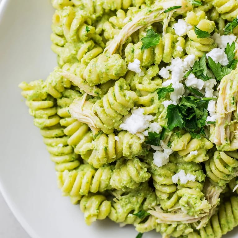 Absolutely. Penne, fusilli, farfalle, or gemelli all catch the creamy sauce well. Short pasta with ridges or nooks works better than long strands like spaghetti for holding onto the thick cilantro-lime coating.