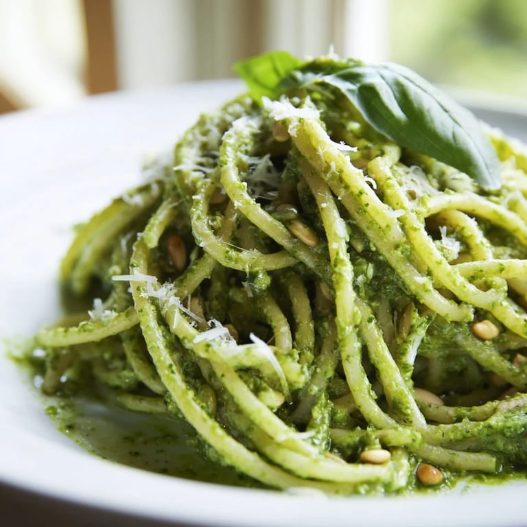 The pesto sauce can be prepared up to 3 days in advance and stored in an airtight container in the refrigerator. When ready to serve, gently rewarm the sauce before tossing with freshly cooked pasta for best results.