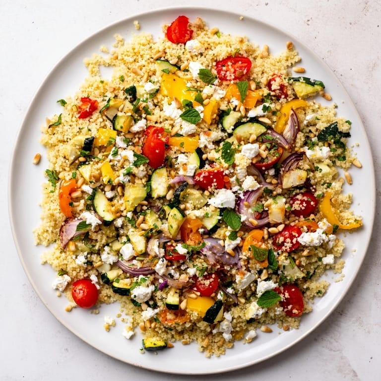 Save The smell of caramelized bell peppers hit me the moment I opened the oven, and I knew this salad was going to be different from the usual leafy greens I'd been throwing together. A friend had mentioned couscous salads at a potluck, and I was skeptical until I tasted hers. The next week, I bought a bag of couscous and started roasting whatever vegetables were in my crisper drawer. What came out was this bright, filling dish that didn't need much fussing but tasted like I'd spent hours on it.
