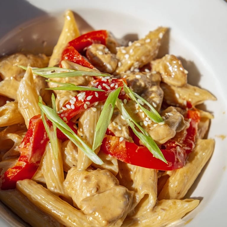 Save My roommate walked in one night craving takeout, but we were both too tired to leave the apartment. I stared into the fridge and saw chicken, a jar of sweet chili sauce I'd bought on impulse, and leftover pasta from Sunday. What started as lazy improvisation turned into something we couldn't stop talking about. The creamy heat, the way the lime cut through the richness, it felt like we'd stumbled onto something that shouldn't work but absolutely did.