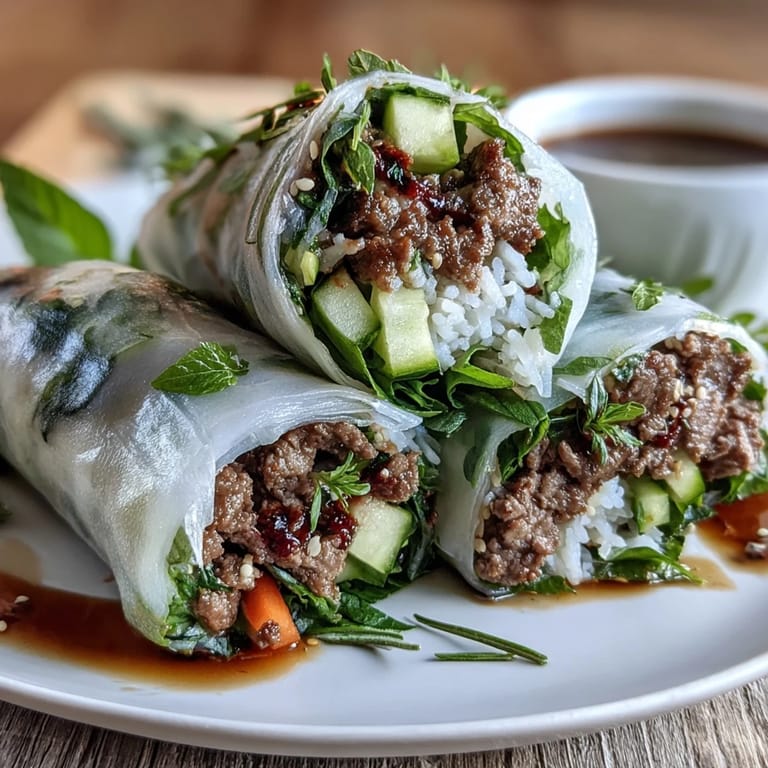 Save The first time I got the roll exactly right—tight, even, with the herbs visible through the wrapper like stained glass—I held it up like a trophy. My partner laughed and said it looked too pretty to eat. We ate it anyway, dipping it into the sauce until it was gone in four bites, and I immediately started rolling another one. That's the thing about these rolls: they disappear fast, but making them never feels like a chore.