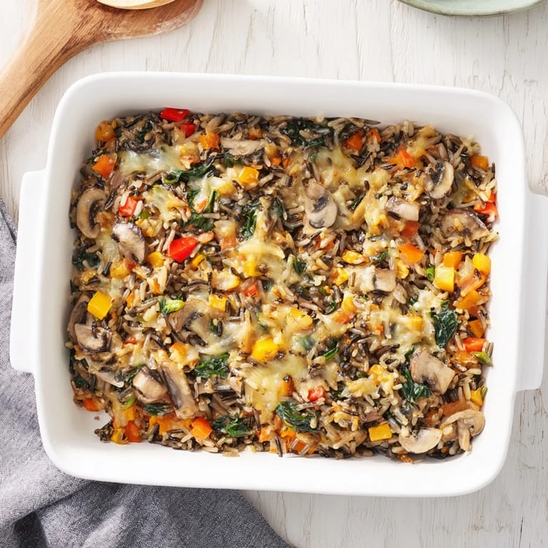 Save The kitchen counter was scattered with cookbooks, and somewhere between a failed soup experiment and a pot of forgotten rice, this casserole was born. It was supposed to be a simple side dish for a Tuesday dinner, but the way the earthy mushrooms filled the entire house with such a comforting aroma made me pause and pay attention. That first bite, with wild rice popping between my teeth and vegetables softened just right, changed how I thought about vegetarian casseroles entirely.